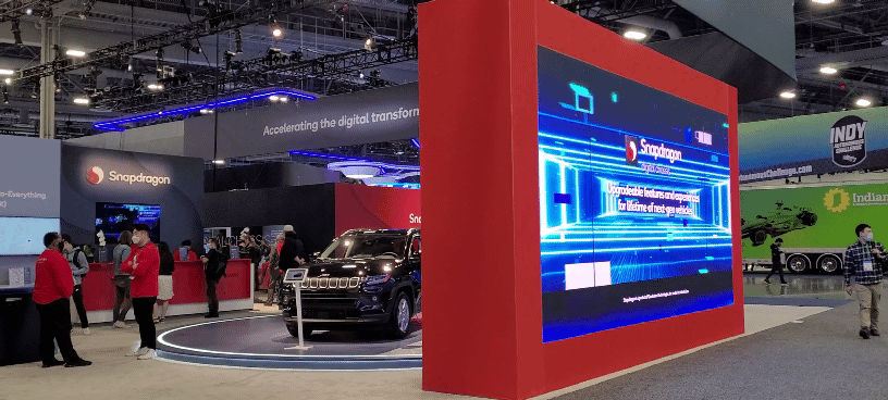 LVCC 웨스트홀에 부스를 마련한 퀄컴은 다양한 모빌리티 플랫폼을 선보였다. [김영은 기자] 모빌리티 기업이나 중공업 기업이 참여하는 웨스트홀에는 또 다른 단골 부스도 자리하고 있었다. 미국 반도체 회사 ‘퀄컴’이 그 주인공이다. 퀄컴은 올해 웨스트홀에만 부스를 차렸다. 퀄컴이 개발하고 있는 다양한 모빌리티용 칩에 집중하기 위해서다. 퀄컴은 차량용 통합 플랫폼인 ‘스냅드래곤 디지털 섀시’를 비롯해 자율주행 플랫폼인 ‘스냅드래곤 라이드’ 등 다양한 모빌리티용 반도체와 소프트웨어 사업을 진행하고 있다.