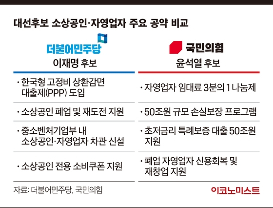 여·야 대선 후보 소상공인·자영업자 지원 공약 비교