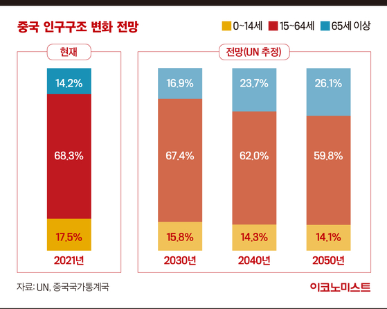 특히 중국은 경제협력개발기구(OECD) 국가들과 달리 ‘부유해지기 전에 늙는(未富先老)’ 현상이 나타나면서 사회·경제적 충격이 더 클 것으로 예상된다.