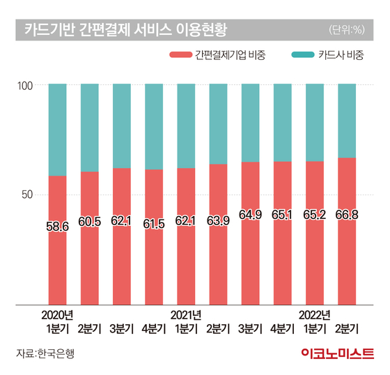 카드 기반 간편결제 빅테크 점유율, 카드사 2배 달해