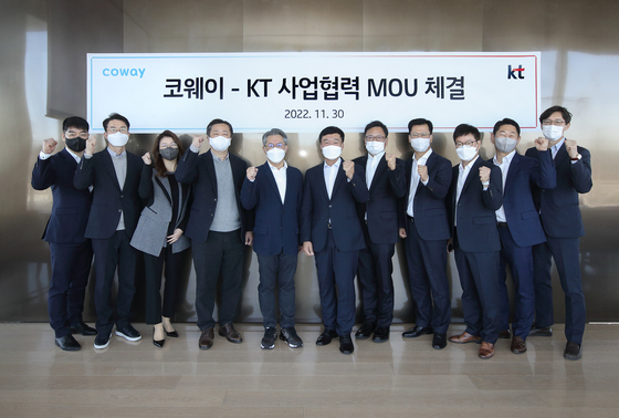 KT는 코웨이와 미래 스마트홈 시장 협력을 위한 파트너십을 체결했다고 30일 밝혔다. 이날 KT광화문 이스트사옥에서 열린 체결식에는 KT 그룹Transformation부문장 윤경림 사장, 코웨이 서장원 대표 등 양사 주요 임원들이 참석했다.