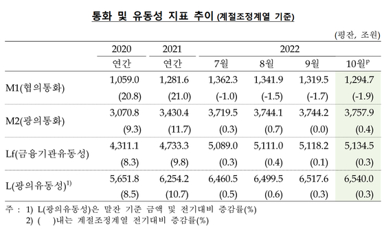 - 한은 ‘2022년 10월중 통화 및 유동성’