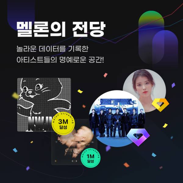 멜론의 전당은 ▶데뷔 후 현재까지 10억 스트리밍 이상 달성한 아티스트를 기념하는 ‘아티스트 부문’(빌리언스 클럽) ▶발매 후 24시간 동안 100만 스트리밍 이상 달성한 앨범을 축하하는 ‘앨범 부문’(밀리언즈 앨범) ▶국내외 아티스트의 자랑스러운 기록과 유의미한 성적에 대해 월별로 분석하고 기록하는 ‘데이터랩’으로 구성됐다.