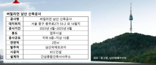22일 중구청 및 업계에 따르면 ‘버밀리언 남산’ 시행사 남산피에프브이는 이 단지를 오피스로 변경하는 것을 구청에서 허가받았다. 현재 설계변경 막바지에 있으며 다음달 중순 착공할 계획이다.