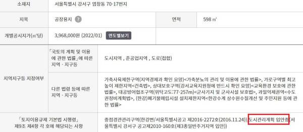 서울 강서구 염창동 70-17번지 토지이용계획열람 [사진 토지e음 일부 캡처]