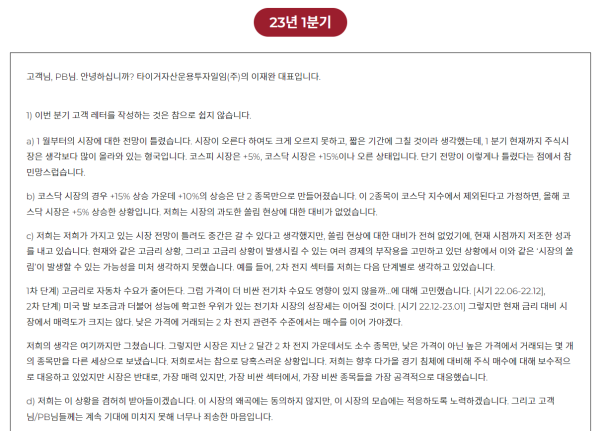 - 타이거자산운용, 1분기 고객레터 사과문 공개