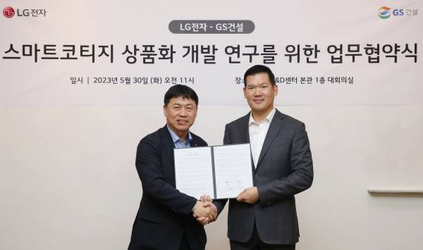 GS건설과 LG전자는 30일 서울 금천구에 위치한 LG전자 가산 R&D 캠퍼스에서 GS건설 미래혁신대표 허윤홍 사장과 LG전자 H&A 사업본부장 류재철 사장 등 관계자 10여명이 참석한 가운데 ‘스마트코티지 상품화 개발’을 위한 업무협약을 체결했다고 밝혔다.