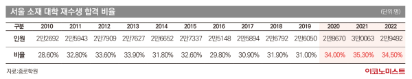 95학번 재수생 비율 38.9%…올해는 33% 내외 추정