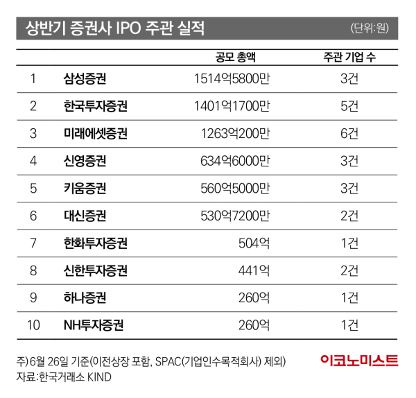 - 상반기 삼성증권 공모액 1514억원으로 1위