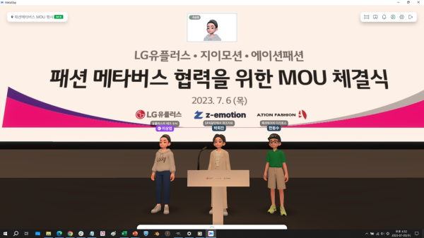 LG유플러스는 패션 기업 ‘에이션패션’, 패션테크 전문기업 ‘지이모션’과 함께 메타버스 사업 협력을 위한 양해각서를 체결했다.