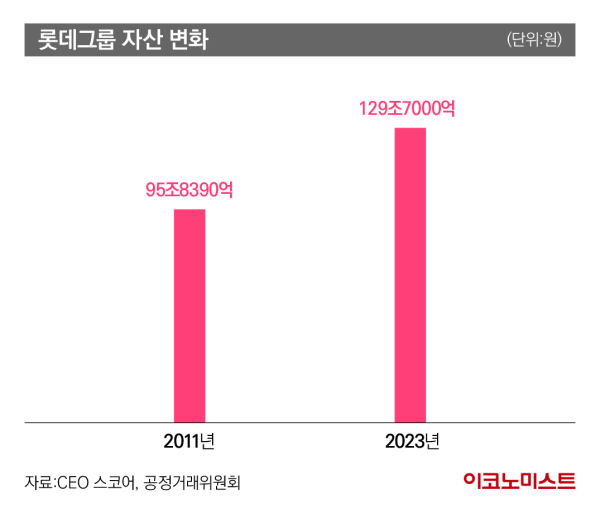 2004년 경영 전면에 나선 신 회장은 보수적이었던 아버지 신 명예회장과 달리 공격적인 경영을 펼쳤다. 국내외 인수합병, 기업공개(IPO), 글로벌 사업 확대 등을 통해 그룹을 본격적인 성장 궤도에 올려놓았다. 2004년 30조3000억원이었던 롯데그룹 자산규모는 올해 129조7000억원으로 4배 이상 성장했다.