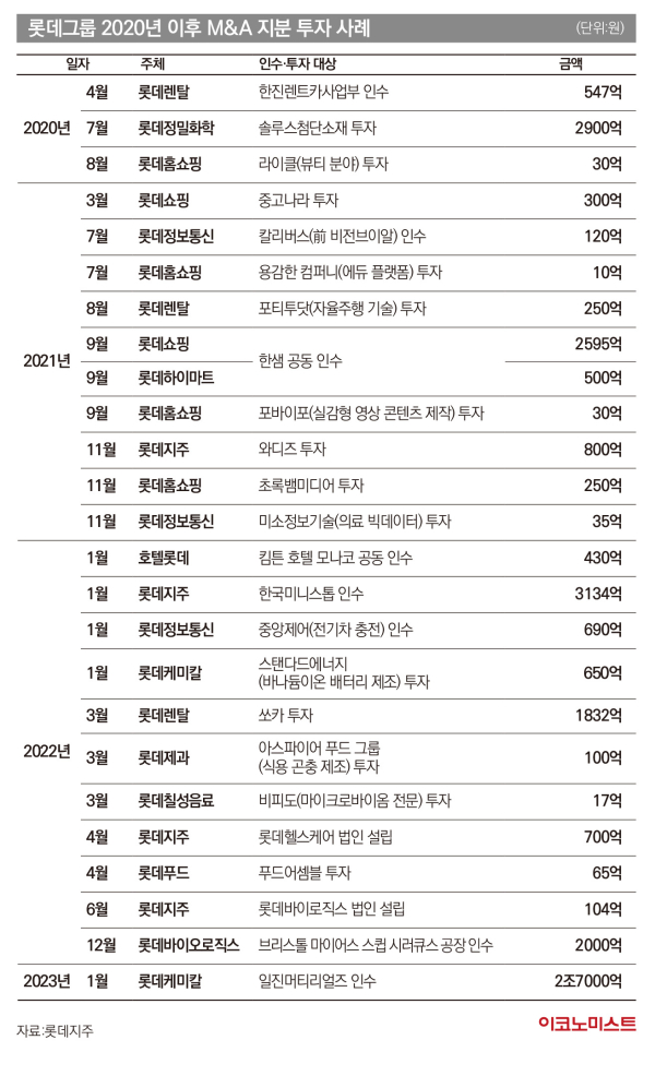 신동빈 회장 전면에 나서며 M&A로 급격한 사세 확장