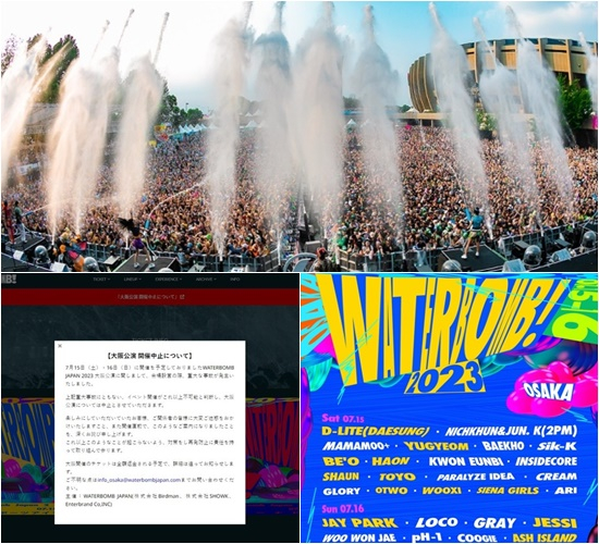 한편 워터밤 오사카 공연은 15~16일 오사카 마이스 스포츠 아일랜드에서 열릴 예정이었다. 물놀이와 공연을 즐기는 여름 페스티벌로, 이번 공연에는 권은비·박재범·2PM 닉쿤, 준케이·마마무 등 국내 뮤지션들이 다수 참석할 예정이었다. 주최측은 티켓을 전액 환불할 예정이다.