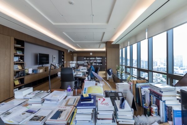 윤 회장이 한국콜마그룹의 모든 임직원에게 책 읽기를 강조하는 것도 이런 이유에서다. 이 회사 임직원들은 매년 6권의 책을 읽고 독후감을 쓴다. 한국콜마 관계자는 “2006년부터 임직원의 독서량을 기록하기 시작했는데 현재까지 이들이 읽은 책의 두께를 추산하면 백두산의 높이를 훌쩍 넘는 4367m에 달한다”고 했다. 윤 회장도 일주일에 3권가량의 책을 읽는다. 책을 통해 본격적으로 삶의 지혜를 찾은 지는 수십년이 지났다. 특히 ‘역사서’는 시대를 초월한 스승이라고 했다. 김주영의 소설 ‘객주’는 6번, 최명희의 소설 ‘혼불’은 7번 읽었다. 그는 “옛것을 모르면 새로움이 없고 역사를 잊으면 잘못을 되풀이한다”며 “역사서는 경험하지 못한 것을 경험하게 하니 이런 종류의 책에서 답을 찾는 경우가 많다”고 했다.