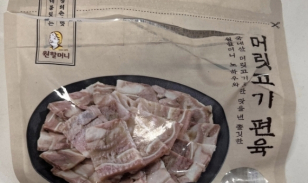 식약처는 축산물가공업체(식육가공업) 대경푸드빌 검단점(인천 서구 소재)이 제조한 '머릿고기 편육' 총 2개 제품에 대해 회수가 진행 중이라고 30일 밝혔다. 2개 제품 모두 OEM(주문자 상표 부착 생산) 방식으로 제조됐는데 유통전문판매원은 원할머니 브랜드를 운영하는 원앤원이다. 제품 포장에는 ‘원할머니 노하우와 국내산 머릿고기로만 맛을 낸 쫄깃한 머릿고기 편육’이라는 문구가 기재돼있다.