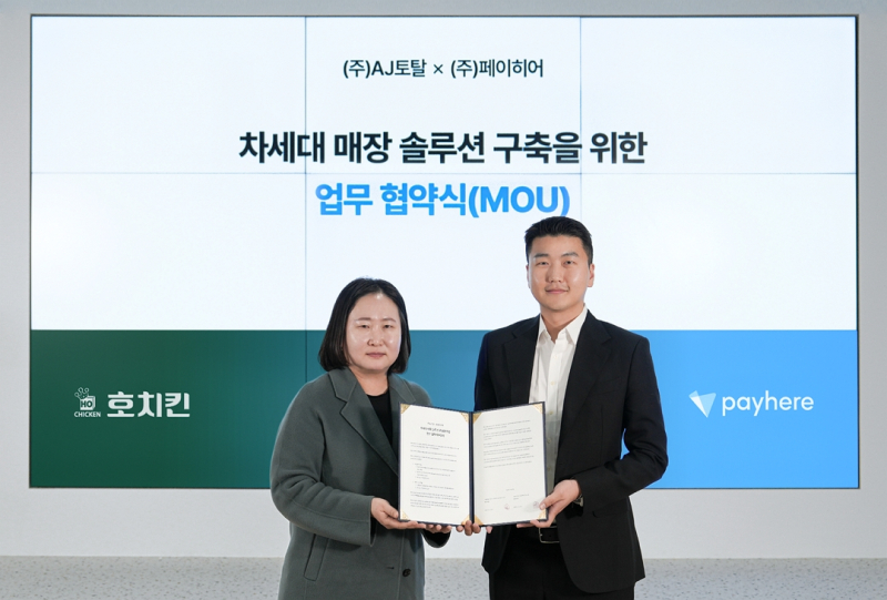 김지영 AJ토탈 본부장은 “페이히어와의 업무 협약으로 CRM 고객 관계 관리 강화를 할 수 있어 기쁘다”며 “이번 협약으로 호치킨은 가맹점을 위한 다양한 고객 관리 지원 프로세스를 마련하고, 고객 데이터를 통합 관리해 더욱 고도화된 마케팅 활동을 진행할 예정”이라고 전했다.