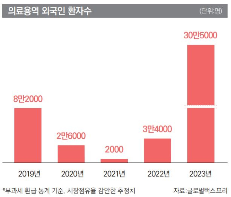 현행 조세특례제한법상 외국인 환자는 부가세를 포함한 의료비를 병원에서 결제한 후 공항이나 항만의 면세구역 환급창구에서 환급받을 수 있다. 환급은 본인의 선택이라 부가세를 환급받지 않는 이들까지 감안하면 실질적인 의료관광객은 훨씬 더 많을 것으로 보인다.