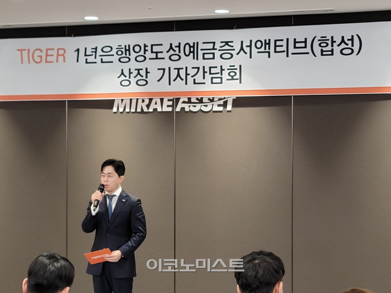미래에셋자산운용은 1일 서울 중구 센터원빌딩에서 ‘TIGER 1년은행양도성예금증서액티브(합성)’ ETF 출시를 기념해 기자간담회를 열었다. 이 ETF는 오는 6일 한국거래소 유가증권시장에 상장될 예정이다.