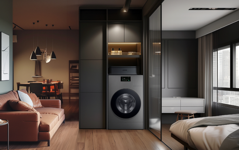 세탁·건조를 하나로 합친 만큼 공간 활용 측면에서도 유리하다. 세탁기와 건조기를 상하 직렬 배치했을 때와 비교하면 상부 수납공간을 추가로 확보할 수 있다. 세탁실의 창문 활용도 자유롭다. 삼성전자는 비스포크 AI 콤보가 세탁기·건조기를 각각 설치할 때보다 설치 공간을 약 40% 절약할 수 있다고 설명했다.