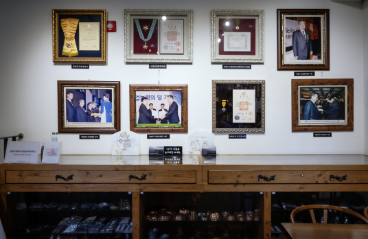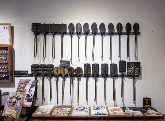 3층 전시관에 들어서면 눈이 휘둥그레진다. 전시된 물품을 자세히 들여다보면 모두 김영모 명장과 관련된 물품들이다. 그가 직접 저술한 책, 빵이나 초콜릿을 만드는 형틀, 역대 대통령들에게 받은 선물, 여러 대회서 받은 상패, 그동안 입었던 제빵사 유니폼 등 제빵 이력만 50년이 넘는 만큼 3층 전시관에는 그가 흘려온 땀과 노력의 결실이 가득하다.