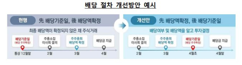 정부가 ‘깜깜이’ 배당을 막기 위해 배당 절차에서 ‘선(先) 배당, 후(後) 기준일 지정’도 할 수 있도록 개선한 결과 주요 상장기업들이 결산 배당 기준일을 연말에서 2월이나 3월로 속속 이동시키면서다.