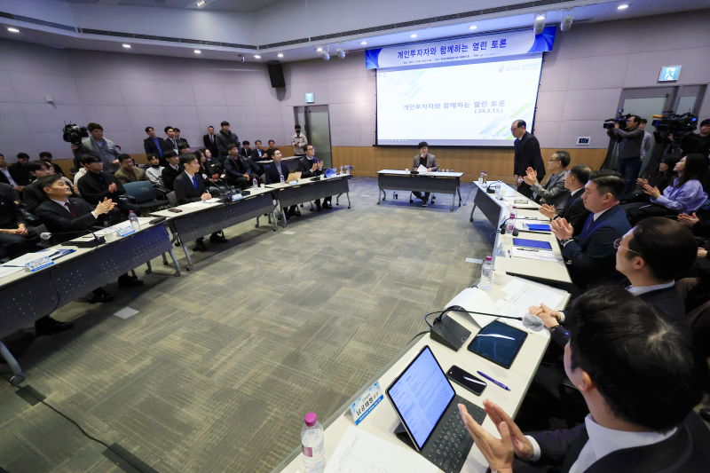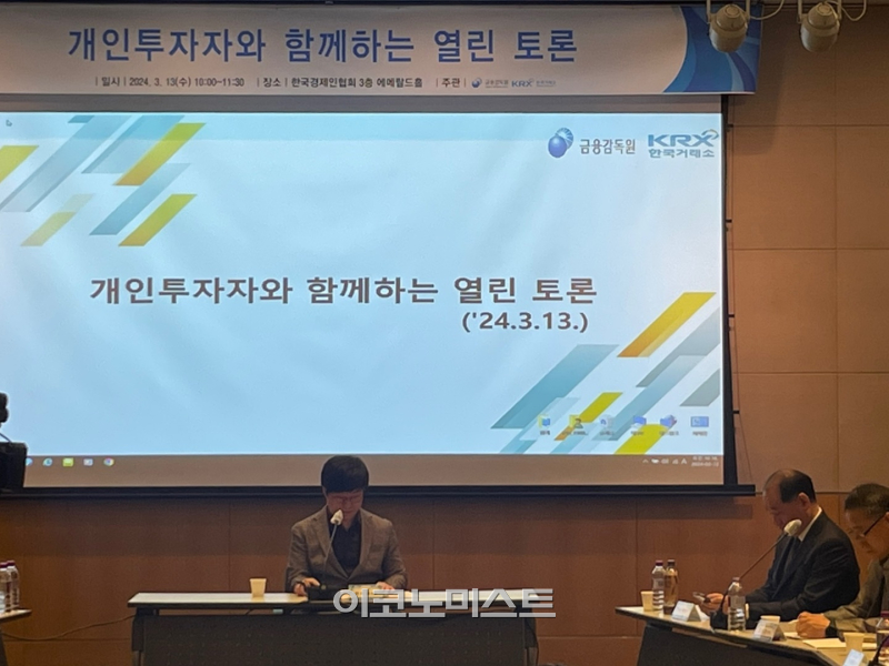 금융감독원과 한국거래소는 13일 오전 서울 영등포구 여의도 한국경제인협회에서 공매도·자본시장 선진화 등을 주제로 ‘개인투자자와 함께하는 열린 토론’ 행사를 개최했다. 금감원 홍보대사이자 유튜버인 ‘슈카’(본명 전석재)가 사회를 맡았으며, 시민단체 대표로 정의정 한국주식투자자연합회 대표와 ‘배터리 아저씨’로 불리는 박순혁 작가 등이 패널로 참석했다.