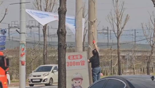 해당 시의원은 “일찍일찍은 1번을 찍으라는 말을 연상하게 만들기 때문에 관할 기관에 철거를 요구했으나 철거하지 않아 직접 나선 것”이라고 밝혔다.
