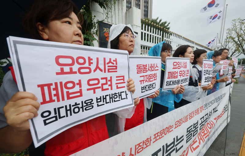 이런 어려운 현실에 보건복지부는 지난해 8월 ‘제3차 장기요양기본계획’을 발표하면서 부족한 요양 인프라를 확충하기 위해 ‘토지·건물 임차’ 규제 완화를 추진하겠다고 밝혔다. 하지만 시민단체 등은 영세 요양시설 난립과 돌봄 공공성 저해 등이 우려된다며 반대했다. 기존 개인 영세사업자들 또한 ‘골목상권 침해’를 주장하며 규제 완화에 반대하고 있다.