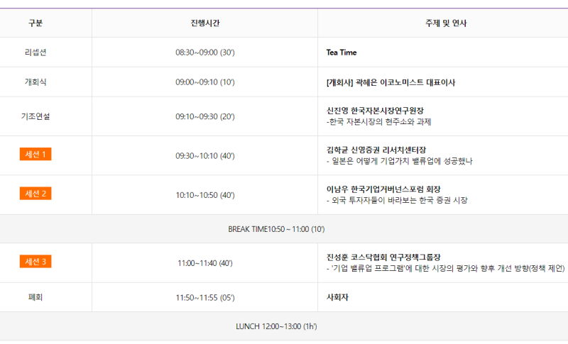 마지막 ‘세션3’에서 진성훈 코스닥협회 연구정책본부 연구정책그룹장은 ‘금융당국의 ‘기업 밸류업 프로그램’에 대한 시장의 평가와 향후 개선 방향’ 주제로 ‘기업 밸류업 프로그램’에 대한 시장의 평가와 향후 개선 방향을 전달한다.