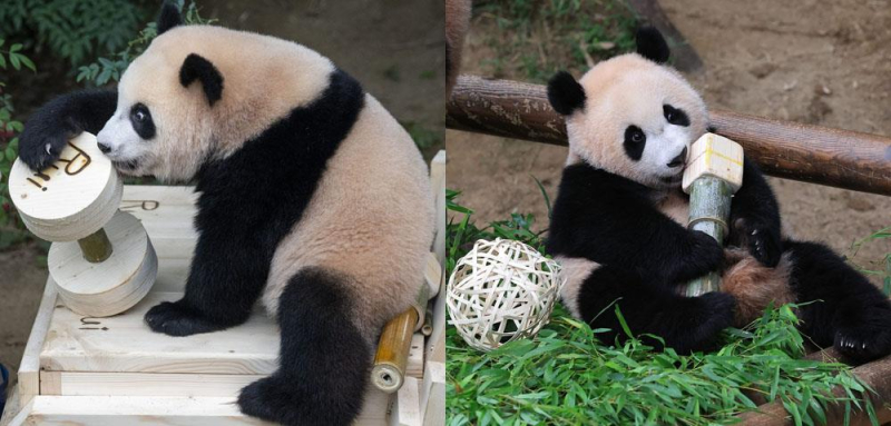 첫돌 맞은 루이·후이바오…쌍둥이 판다가 돌잡이에서 잡은 물건은?