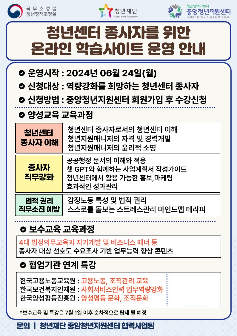 중앙청년지원센터, 전국 청년센터 종사자 위한 온라인 학습 서비스 시작