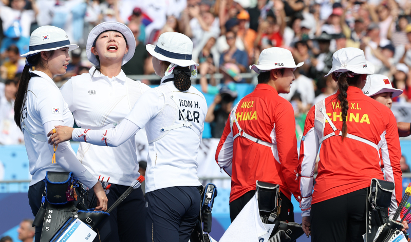 3세트와 4세트를 잇따라 따낸 중국 쪽으로 분위기가 넘어갈 수도 있었던 상황. 그러나 임시현이 쏜 슛오프 마지막 화살이 9점과 10점 선에 걸쳤다. 판독 결과는 ‘10점’. 결국 한국은 중국을 슛오프 접전 끝에 29-27로 승리하고 정상에 올랐다. 올림픽 금메달을 확정하는 순간이자, 선배들이 일궈낸 올림픽 9연패의 역사를 10연패로 이어가는 순간이었다.