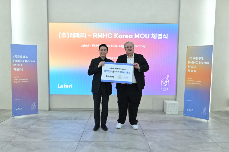협약식은 전날(23일) 서울 강남구 레페리 사옥에서 최인석 레페리 의장과 제프리 존스 RMHC Korea 회장을 비롯한 양사 임직원들이 참석한 가운데 진행됐다.