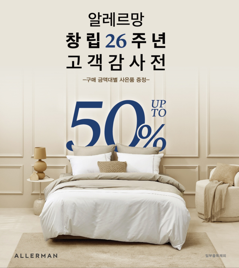 알레르망 관계자는 "26년간 쌓아온 신뢰와 사랑을 바탕으로 고객들에게 최고의 수면 경험을 선사하기 위해 이번 행사를 마련했다"며, "품질과 가격 모두를 만족시킬 알레르망 베딩 제품과 함께 더욱 편안한 가을밤을 맞이하시길 바란다"고 전했다.