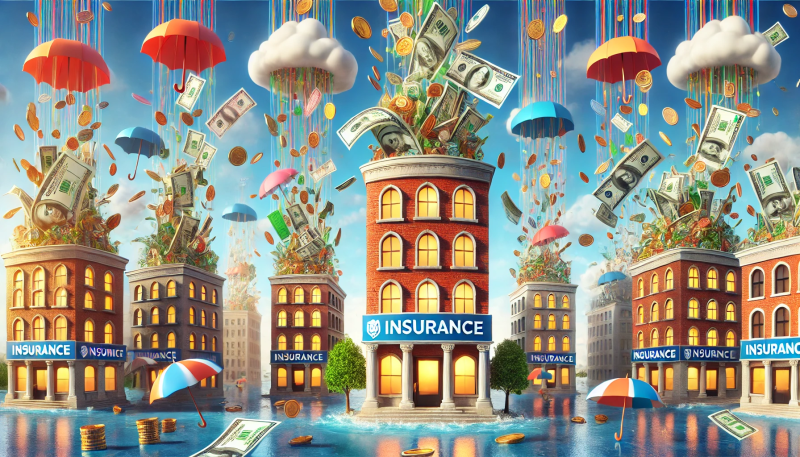 이미지 생성 AI ‘달리’(DALL·E)에 ‘보험사의 배당금이 쏟아지는 그림을 그려 달라’고 주문한 결과. [그래픽 오픈AI 달리]