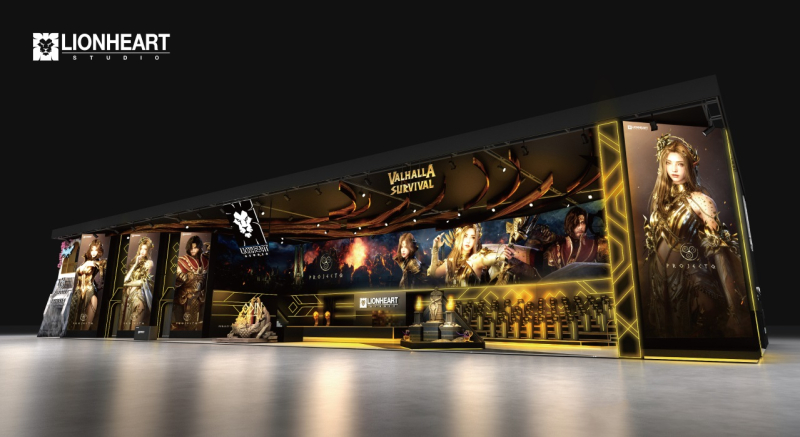 사자의 포효와 울림을 컨셉으로 디자인한 라이온하트 스튜디오의 BTC관 전시 부스는 ▲시연존 ▲전시 체험관 ▲포토존 ▲이벤트 무대로 구성된다. 오픈형 시연존 및 이벤트 무대와 실내형 체험 공간을 균형감 있게 배치한 것이 특징으로, 중앙에는 대표 개발작인 ‘오딘: 발할라 라이징(이하 오딘)’의 포토존을 배치해 ‘오딘’ 개발사로서 정체성도 돋보이도록 했다.