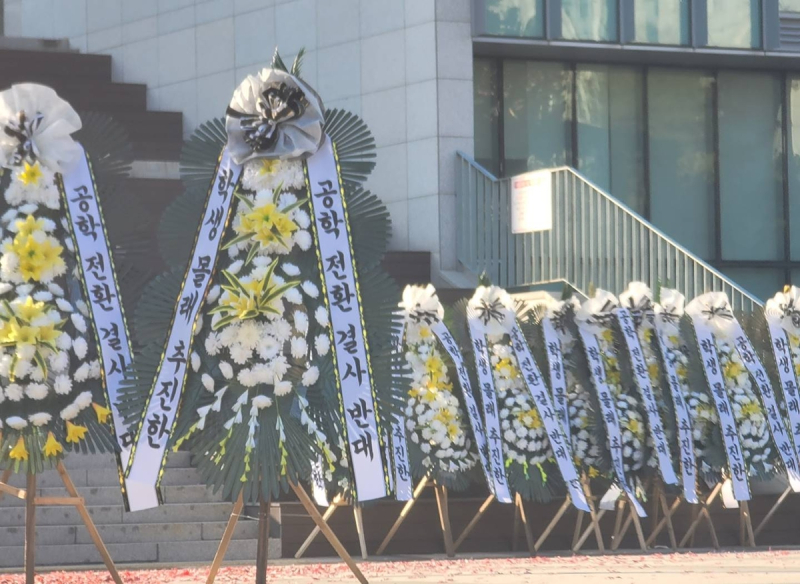 "남녀공학 전환 결사 반대" 동덕여대 근조화환 행렬 시위