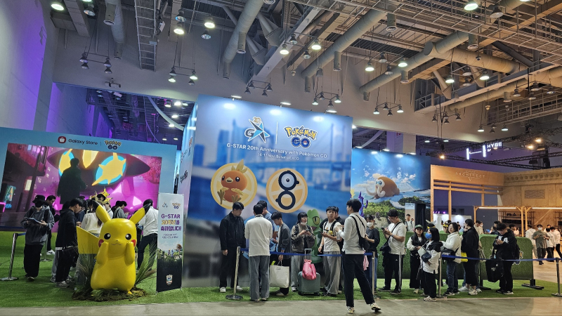 하이브IM 부스 맞은편에는 나이언틱이 ‘포켓몬 고’ 부스를 꾸려 관람객을 맞이했다. 나이언틱은 올해 지스타의 20주년을 축하하기 위한 파트너십의 일환으로 지스타에 참여했다. 유저들은 천장이 막힌 암실 공간에서 큰 스크린에 송출되는 영상을 통해서 거다이맥스 진화에 대한 직간접적인 체험을 할 수 있었으며, 메인부스에서는 포켓몬 고의 기본적인 콘텐츠를 익히고 새롭게 업데이트된 기능에 대해 설명하는 자리가 마련됐다.