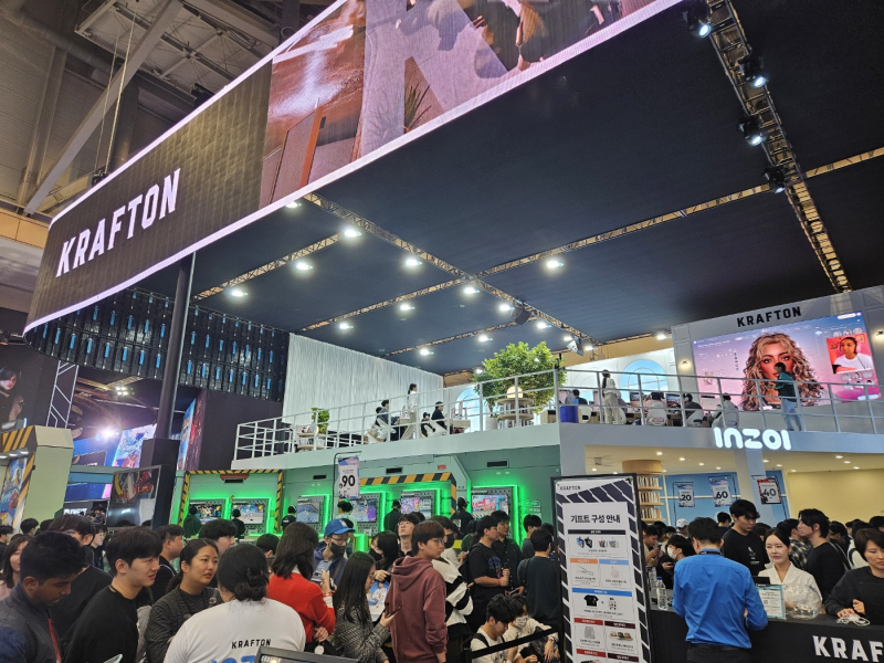 올해 메인스폰서를 맡은 넥슨 부스에도 많은 관람객이 몰렸다. 이번 넥슨관은 ‘넥슨의 도약’이라는 의미를 담아 솟아오르는 스피어를 표현한 초대형 LED 스크린과 유저 체험 중심의 공간으로 구성됐다. 넥슨을 대표하는 다채로운 캐릭터들이 그려진 전시관 전면과 함께, 중앙에는 ‘바람의나라’, ‘메이플스토리’, ‘던전앤파이터’ 등 넥슨의 대표 게임들로 구성된 넥슨 30주년 기념존이 마련돼 관람객들의 눈길을 끌었다.