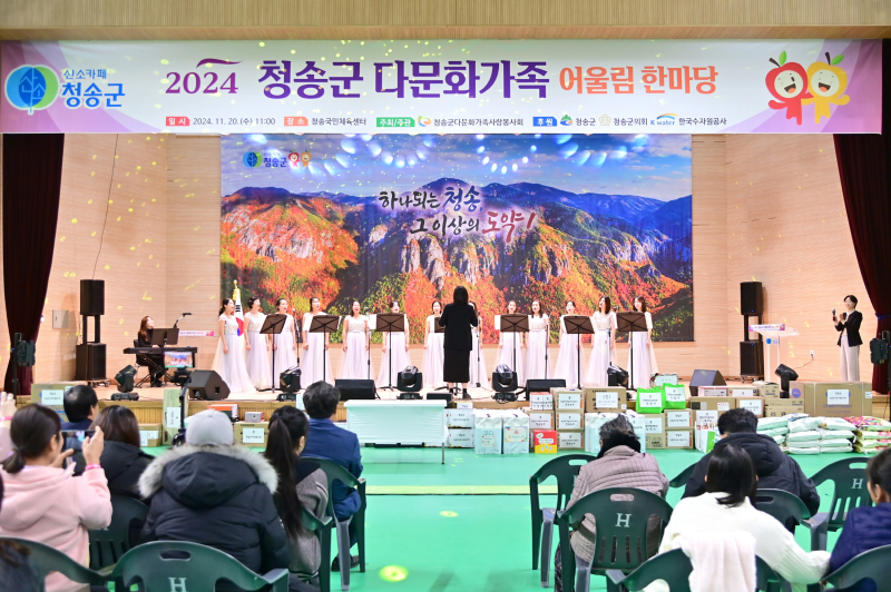 청송군다문화가족사랑봉사회가 주최한 이번 행사는 애플시스터즈 합창단의 아름다운 하모니로 시작됐다. 결혼이민여성으로 구성된 애플시스터즈 합창단의 식전공연은 아름다운 하모니로 풍성한 감동을 선사했다.