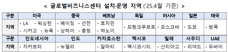 - 글로벌비즈니스센터 전 세계 14개국에 마련…법무·회계 등 특화 서비스 제공