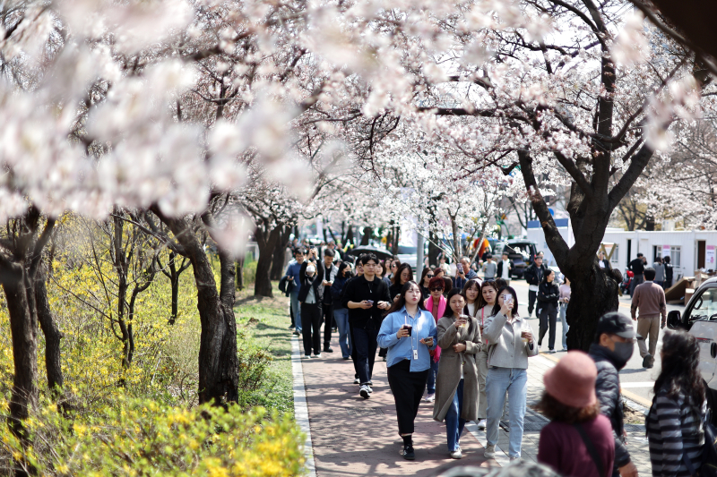 기상청에 따르면 서울의 벚꽃이 평년보다 나흘 빠른 4일에 개화했다. 서울의 벚꽃 개화는 종로구 서울기상관측소에 있는 왕벚나무 한 가지에 세 송이 이상 꽃이 활짝 피었을 때를 기준으로 한다. 하루 전인 3일에는 서울의 대표 벚꽃 군락 단지인 여의도 윤중로에 벚꽃 개화가 확인됐다.