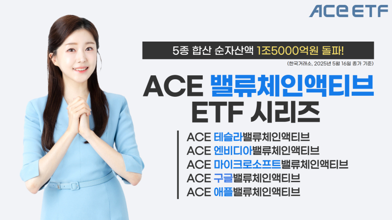 세부 상품별로는 'ACE 테슬라밸류체인액티브' ETF와 'ACE 엔비디아밸류체인액티브'가 16일 순자산액이 각각 1조2451억원과 2328억원으로 가장 높았았다. 이어 ▲ACE 마이크로소프트밸류체인액티브(238억원) ▲ACE 구글밸류체인액티브'(219억원) ▲ACE 애플밸류체인액티브'(114억원)가 그 뒤를 이었다.
