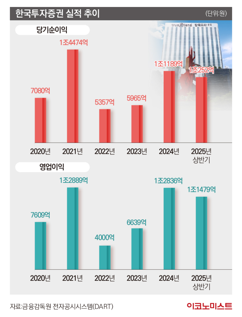 김 사장의 지휘 아래 한국투자증권은 지난해 반기 기준 국내 증권사 최초로 1조원대 순이익을 돌파했다. 반기 누적 영업이익 1조1479억원, 순이익 1조252억원이라는 기록은 업계의 시선을 단숨에 사로잡았다. 브로커리지, 자산관리, 기업금융, 프로젝트파이낸싱(PF) 등 각 부문이 고른 성장을 이어간 결과다.