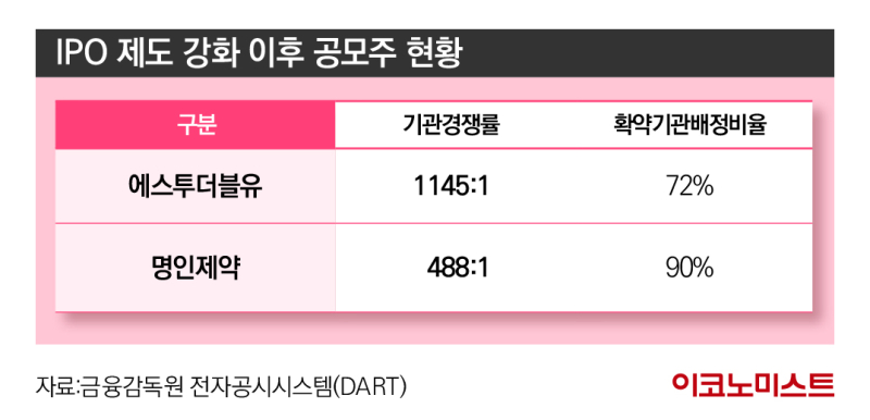 주관사들이 우려했던 불확실성도 한층 줄었다. 제도 시행 직후에는 확약률이 미달할 경우 자기자본으로 물량을 떠안아야 한다는 부담이 있었지만, 첫 두 종목이 기준선을 크게 웃돌면서 최소한의 리스크는 해소됐다는 평가다.