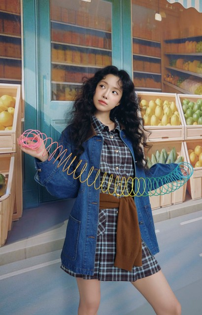 금장 버트 디테일이 포인트인 미니스커트 셋업으로 페미닌한 스타일을 완성했다. 허리라인 벨트 디테일의 라운드 넥 재킷과 세미 와이드핏 슬랙스 셋업으로 감각적인 셋업 스타일을 제안했다. 체크 패턴의 원피스엔 데님 자켓을 매치하고 가디건을 허리에 둘로 포인트를 주는 감각을 선보였다.