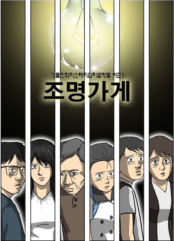 다섯 번째 추천 웹툰은 카카오웹툰의 ‘조명가게’다. 웹툰 ‘조명가게’는 삶과 죽음의 경계를 맴도는 사람들이 찾아오는 조명가게의 미스테리를 다룬다. 인물 저마다의 사연이 밝혀질수록 처음 느끼던 공포감을 뒤로하고 점차 깊은 휴머니즘으로 확장되는 서사적 작품성이 뛰어나다. 방대한 ‘강풀 유니버스’에서 이른바 ‘미심썰’(미스테리심리썰렁물) 장르에 해당하는 작품으로, 공포와 미스터리 외연 안에 진한 휴머니즘을 담아 독자들에게 큰 호응을 이끌어냈다. 특히 다양한 등장인물들의 스토리를 잘 짜인 세계관 아래 촘촘히 엮어내는 능력이 두드러지는 작품이다.