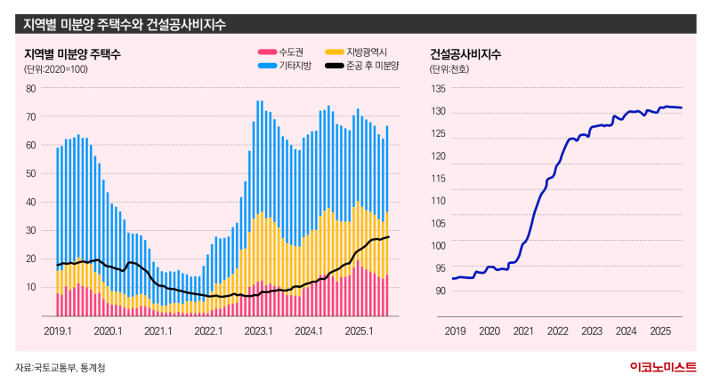 지방 미분양이 장기화되고 ▲주택공급 감소 ▲공사비 상승 ▲안전사고 및 유동성 대응 부담이 가중됨에 따라 중견·중소 건설사를 중심으로 건설산업 전반의 구조조정도 지속될 전망이다. 2025년 들어서도 ▲신동아건설(2024년 시공능력순위 58위) ▲대저건설(103위) ▲삼부토건(71위) ▲삼정기업(114위) ▲벽산엔지니어링(180위) ▲영무토건(111위) 등 10개 이상의 중견·중소 건설사들이 기업회생을 신청했다. 또한 9월에는 대형 시행사인 DS네트웍스가 기업회생을 진행하기로 했다.