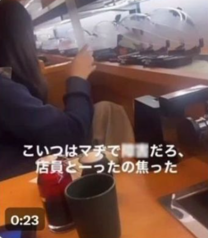 현지 매체들은 지난 14일 영상을 공개하며, 편한 옷차림의 여학생으로 추정되는 손님이 초밥을 접시에 담아 만지고, 간장을 마시는 장면이 담겼다고 보도했다. 맞은편에 있던 동행은 이를 촬영하며 함께 웃는 모습이 영상에 포착됐다.