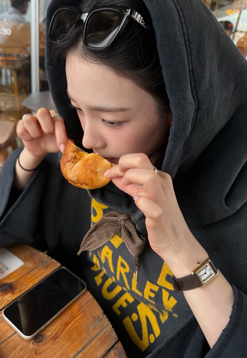 사진 속 카리나는 후드티를 푹 눌러쓴 채 카페에서 빵을 즐기며 수수한 매력을 드러냈다. 꾸밈없는 민낯임에도 맑은 피부와 또렷한 이목구비가 돋보이며, 팬들은 “민낯이 이 정도면 반칙”, “피곤해도 여전히 예쁘다” 등의 반응을 보였다. 또 다른 사진에서는 밤거리의 불빛을 배경으로 환하게 미소 짓는 모습으로, 투어를 마친 여유로운 기분이 전해졌다.